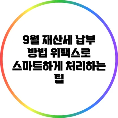 9월은 재산세 납부의 필수적인 시기로, 이 시점에서 세금 납부를 하지 않으면 가산세가 부과될 수 있어요. 따라서, 기한 내에 빠짐 없이 납부하는 것이 중요하죠.