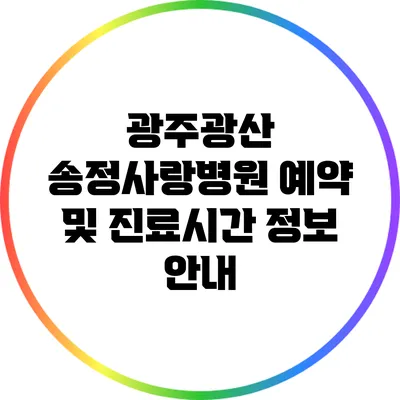 ✅ 송정사랑병원의 진료시간과 예약 방법을 자세히 알아보세요.