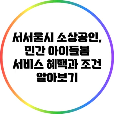 서서울시는 소상공인을 지원하기 위해 여러 정책을 시행하고 있어요. 그 중에서도 민간 아이돌봄 서비스는 소상공인의 생산성을 높이고, 일과 가정의 균형을 맞출 수 있도록 도와주는 중요한 프로그램이에요.