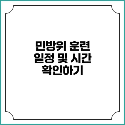 민방위 훈련의 일정은 각 지역의 주민센터에서 확인할 수 있어요. 또한, 많은 지방자치단체는 인터넷을 통해 훈련 일정을 공지하고 있습니다. 다음은 민방위 훈련 일정을 확인할 수 있는 방법들입니다.