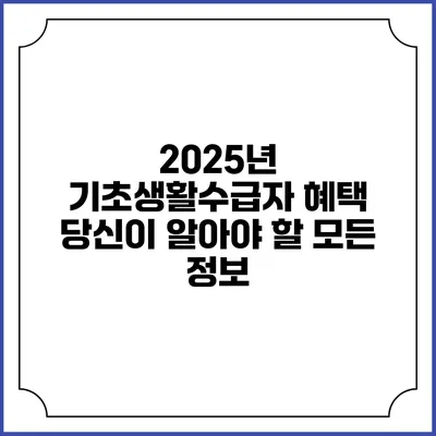 2025년 기초생활수급자 혜택, 당신이 알아야 할 모든 정보